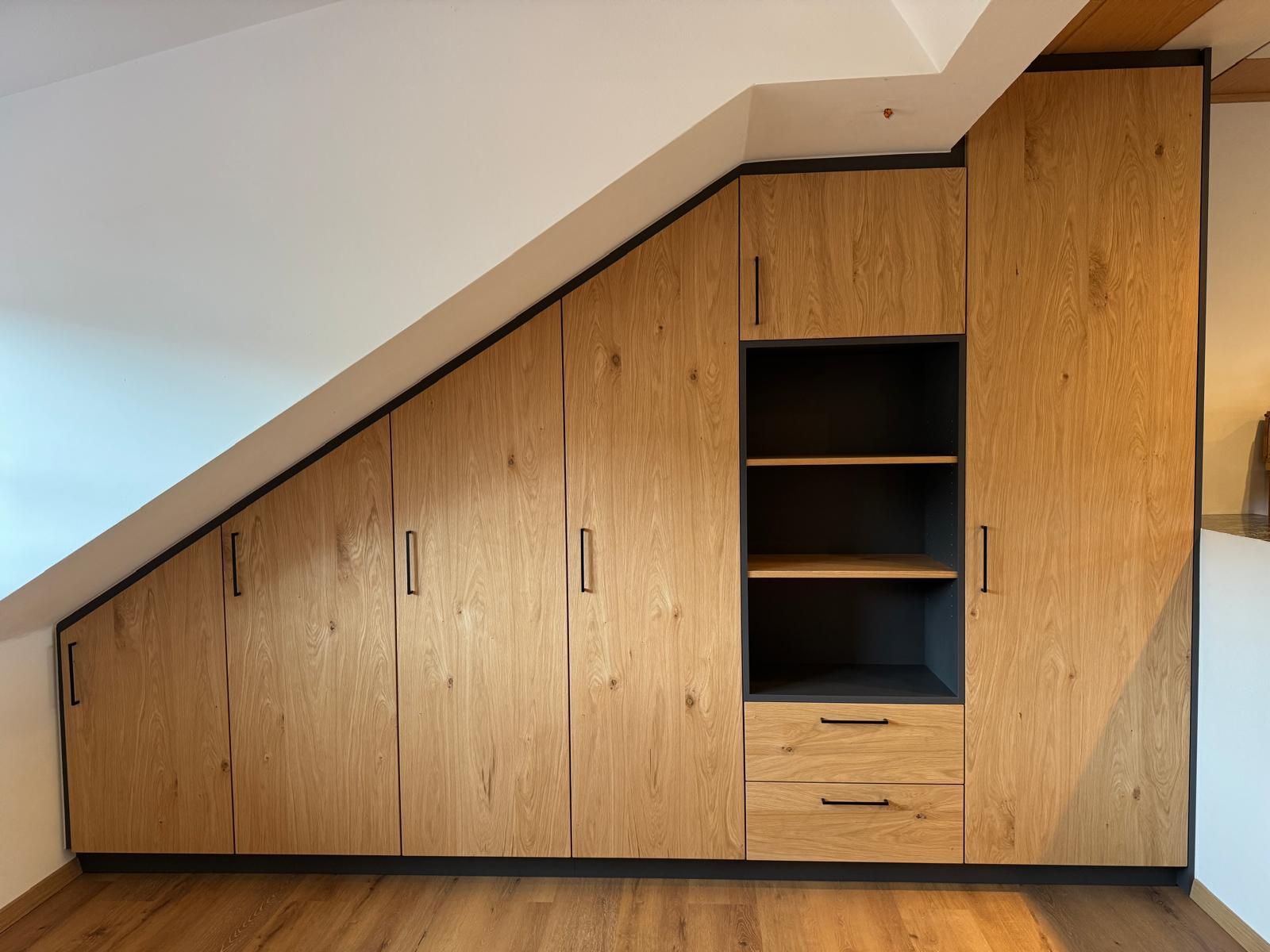 Jedes Projekt erzählt eine eigene Geschichte. In unserer Schreinerei in Schaufling im Landkreis Deggendorf entstehen individuelle Möbel und Innenausbau-Lösungen für Kunden in ganz Niederbayern. Von der maßgefertigten Küche über passgenaue Einbauschränke bis hin zu individuellen Lösungen für Wohn- und Gewerberäume – hier erhalten Sie einen Einblick in unsere Arbeit.